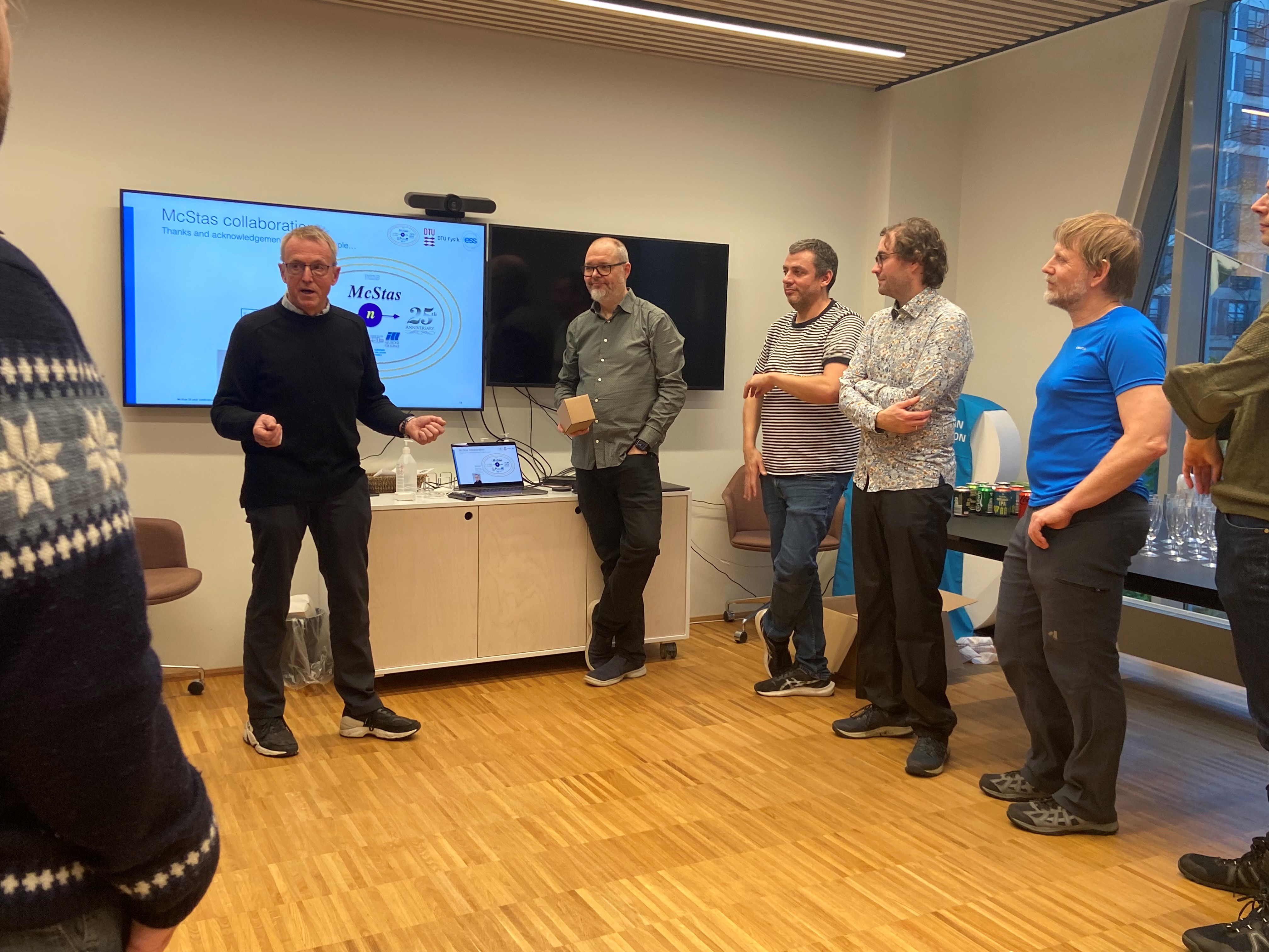 The 25th-anniversary celebration of the McStas collaboration took place on the afternoon of November 16th, co-hosted by ESS DMSC and DTU Physics.