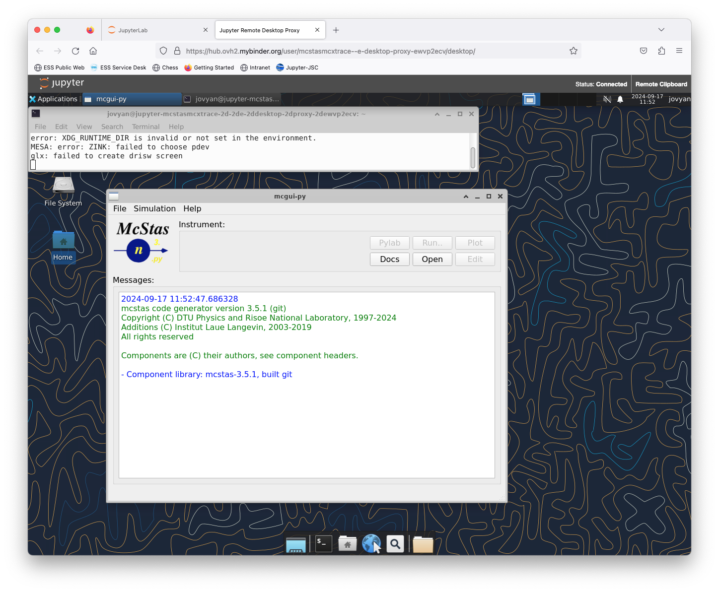 (mcstas-pygen-driven button in mcgui directly spawns JupyterLab with a generated notebook)